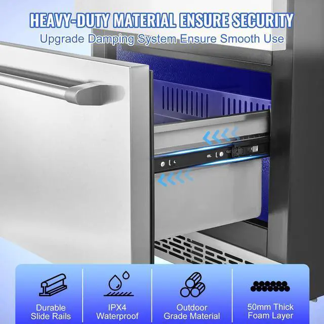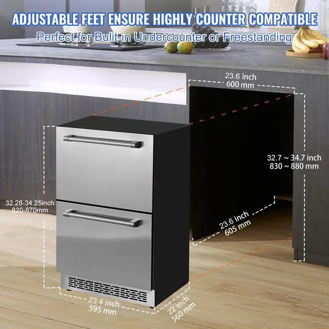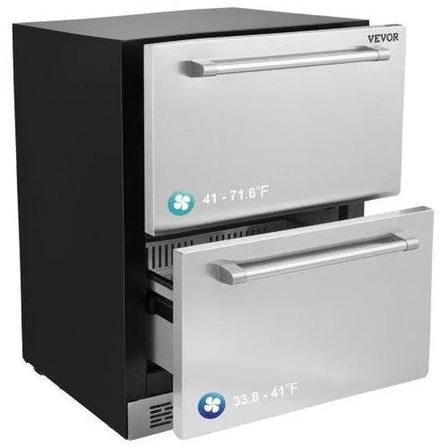 VEVOR 24" Undercounter Refrigerator, 2 Drawer Wine Refrigerator with Different Temperature, 4.87 Cu.ft. Capacity, Waterproof Indoor and Outdoor Under Counter Drawer Fridge for Home Use