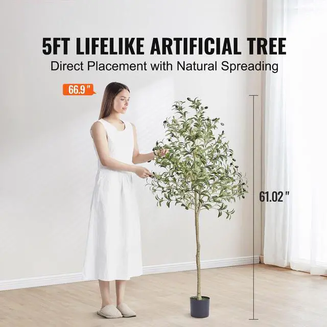 VEVOR Artificial Olive Tree, 5 FT Tall Faux Plant, Secure PE Material & Anti-Tip Tilt Protection Low-Maintenance Plant, Lifelike Green Fake Potted Tree for Home Office Warehouse Decor Indoor Outdoor