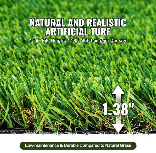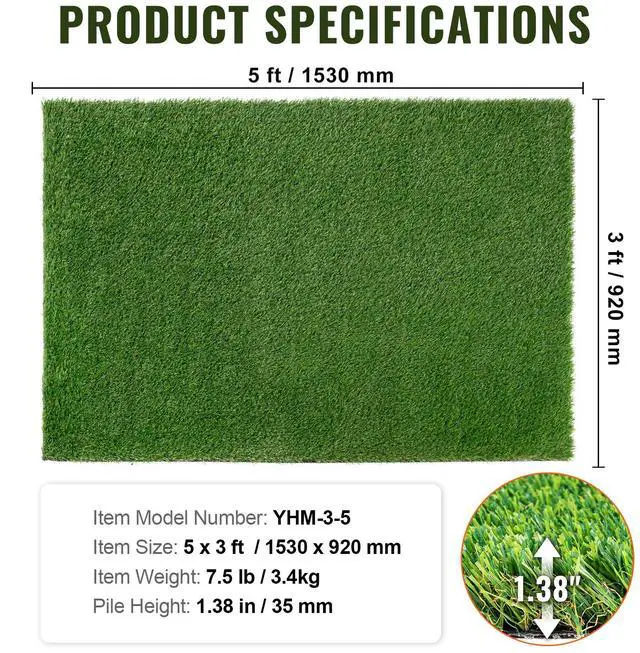 VEVOR Artifical Grass, 3 x 5 ft Rug Green Turf, 1.38" Fake Door Mat Outdoor Patio Lawn Decoration, Easy to Clean with Drainage Holes, Perfect For Multi-Purpose Home Indoor Entryway Scraper Dog Mats