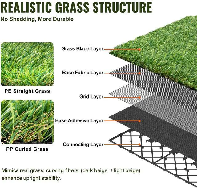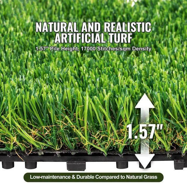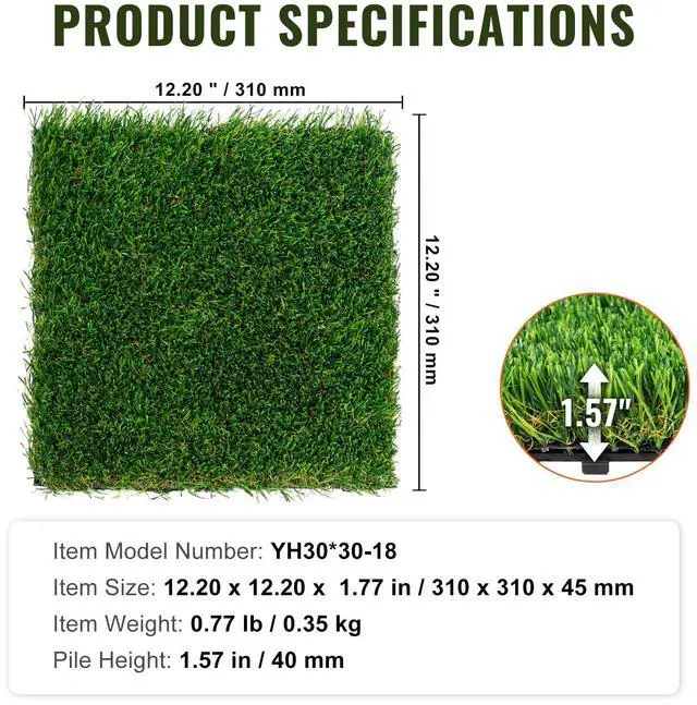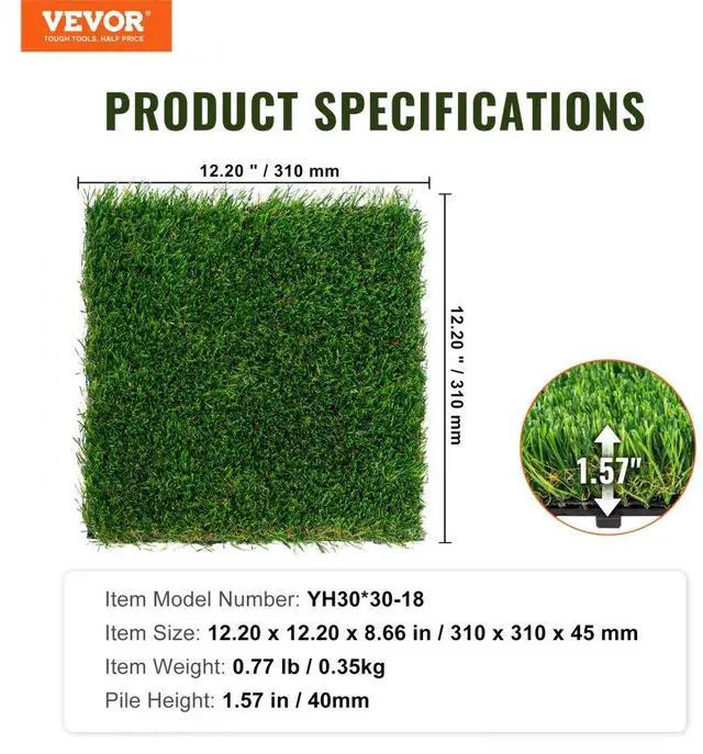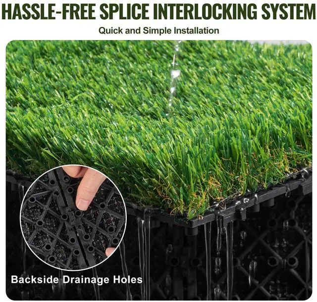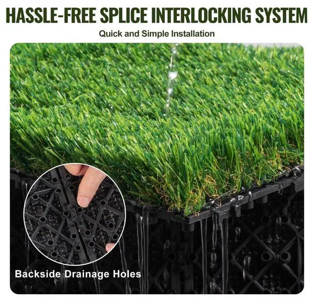 VEVOR Artifical Grass Tiles Interlocking Turf Deck Set, 18 Pack - 12"x12", Synthetic Fake Grass Self-draining Mat Flooring Decor Pad, Perfect For Multi-Purpose Indoor Outdoor Entryway Scraper Dog Mats