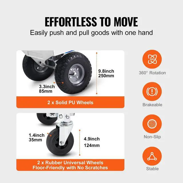 VEVOR Aluminum Hand Truck, 2 in 1, 800 lbs Load Capacity, Heavy Duty Industrial Convertible Folding Hand Truck and Dolly, Utility Cart Converts from Hand Truck to Platform Cart with Rubber Wheels
