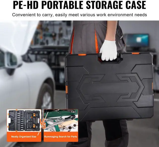 VEVOR Mechanics Tool Set and Socket Set, 1/4" 3/8" 1/2" Drive Deep and Standard Sockets, 205 Pcs SAE and Metric Mechanic Tool Kit with Bits, Combination Wrench, Hex Wrenches, Accessories, Storage Case