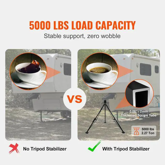 VEVOR 5th Wheel Tripod Stabilizer, 5000 LBS Load Capacity Tripod Fifth Wheel Stabilizer, 35"-57" Adjustable Height RV Gooseneck Stabilizer, Tripod Jack for Fifth-Wheel Trailers, RVs, and Campers