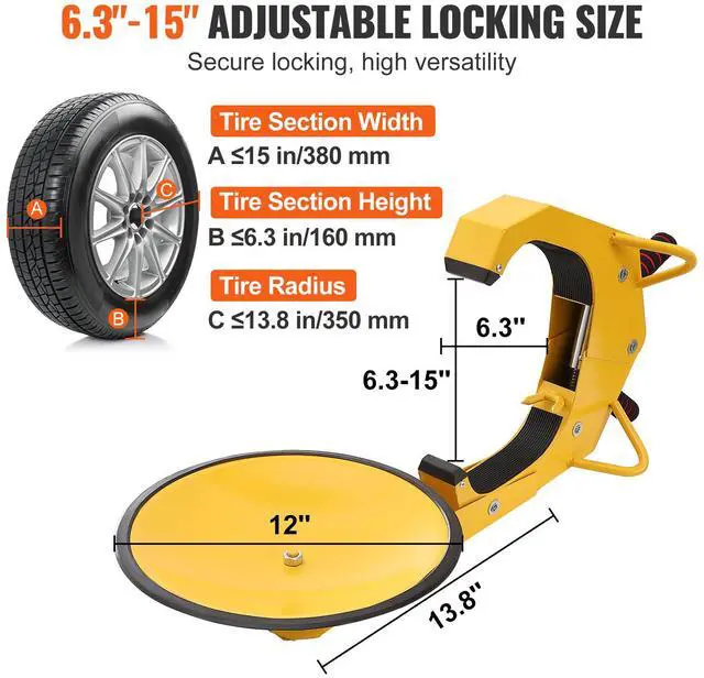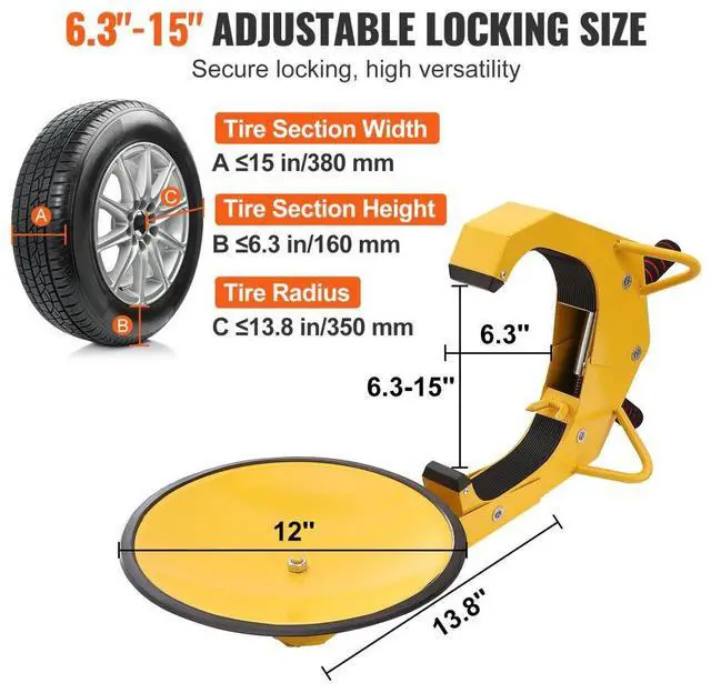 Type: Wheel Lock,Item Model Number: QS-002,Quantity: 1 pc,Material: Q235 Steel,Sucker Diameter: 12"/30 cm,Net Weight: 11 lbs/5 kg,Fit Wheel Diameter: 6.3"-15"/160-380 mm