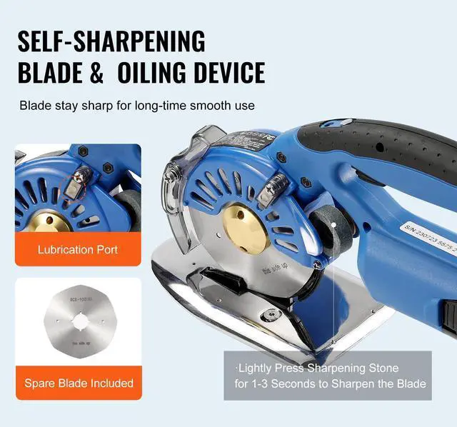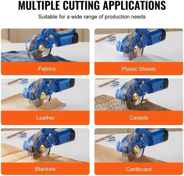 VEVOR Fabric Cutter, 5-Speed Cordless Electric Rotary Fabric Cutting Machine, 1.1" Cutting Thickness, Octagonal Knife, with Replacement Blade and Battery Charger, for Multi-Layer Cloth Fabric Leather