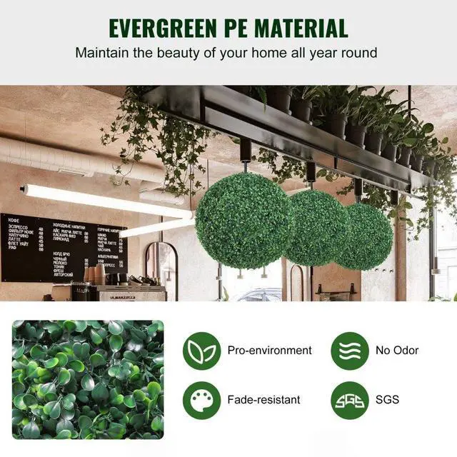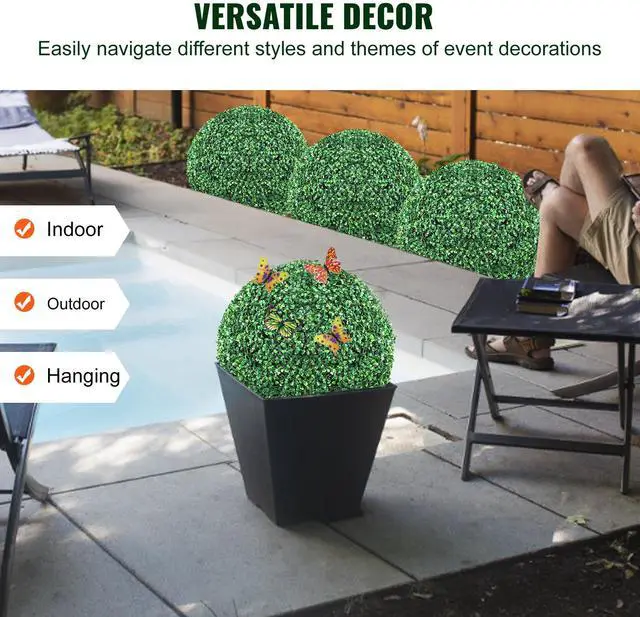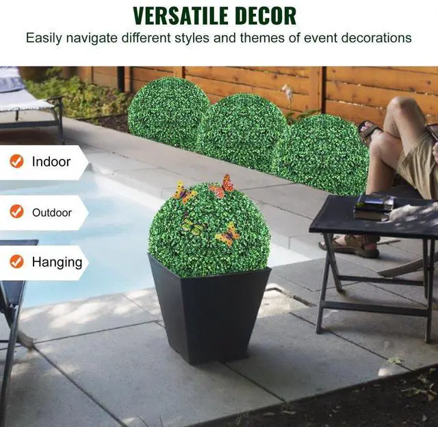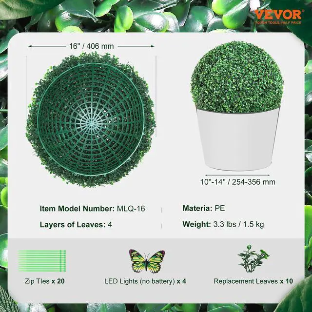 VEVOR Artificial Topiaries Boxwood Trees, 16 Tall (2 Pieces), Ball-Shape Faux Topiaries Plant, All-year Green Feaux Plant Decorative Balls for Backyard, Balcony,Garden, Wedding and Home Décor