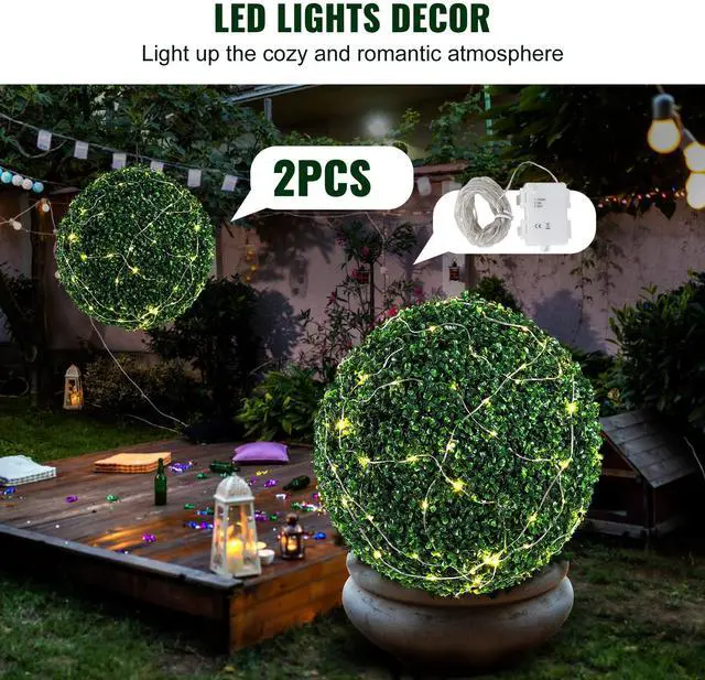 VEVOR Artificial Topiaries Boxwood Trees, 20 Tall (2 Pieces), Ball-Shape Faux Topiaries Plant, All-year Green Feaux Plant Decorative Balls for Backyard, Balcony,Garden, Wedding and Home Décor