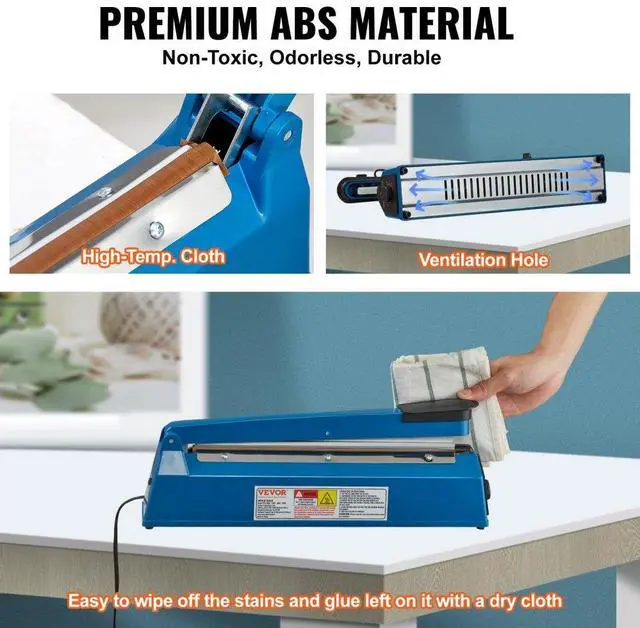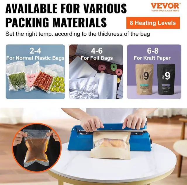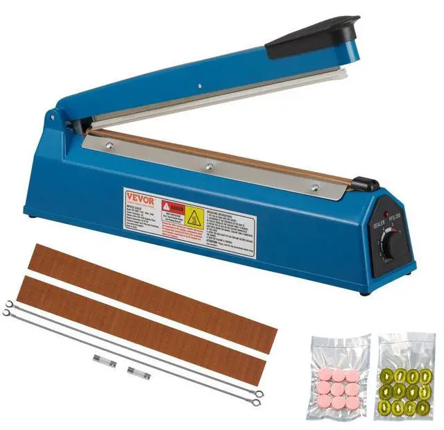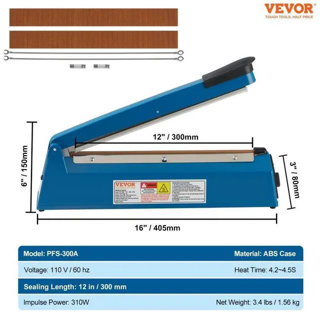 VEVOR Impulse Sealer 12 inch, Manual Heat Seal Machine with Adjustable Heating Mode, ABS Shrink Wrap Bag Sealers for Plastic Mylar PE PP Bags, Portable Poly Bag Sealing Machine with Extra Replace Kit