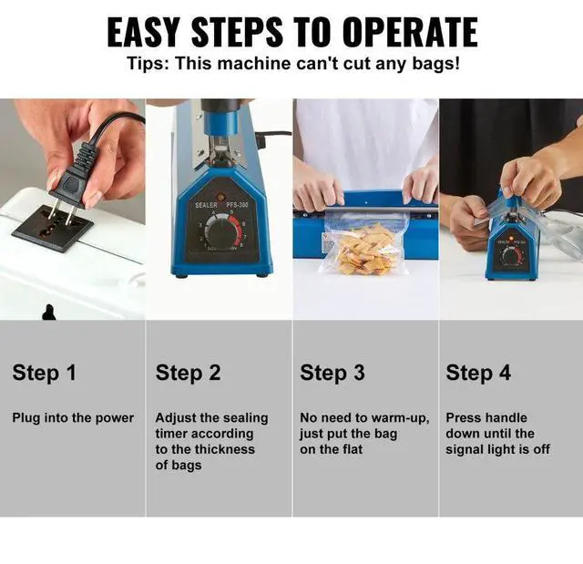 Heat Time: 4.2-4.5S,Voltage: 110 V / 60 hz,Item Model Number: PFS-300A,Material: ABS Case,Impulse Power: 310W,Net Weight: 3.3 lbs / 1.5 kg,Sealing Length: 12 in / 300 mm