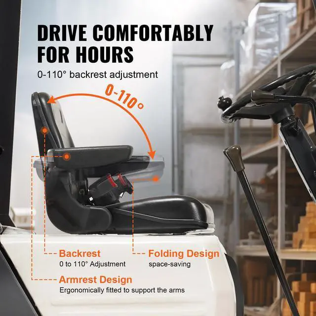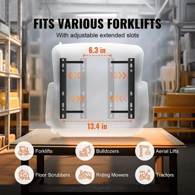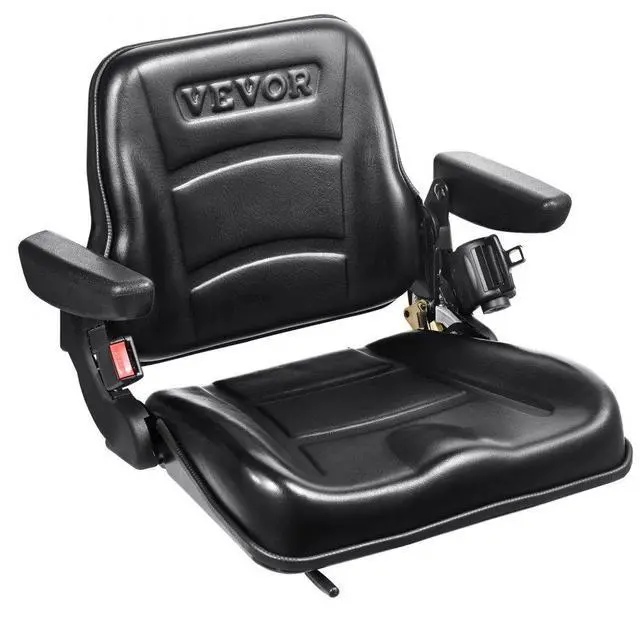 VEVOR Universal Forklift Seat, Fold Down Tractor Seat with Adjustable Angle Back, Micro Switch, Seatbelt and Armrests, 6.3-13.4 inch Slot Tractor Seat for Tractor Loader Excavator