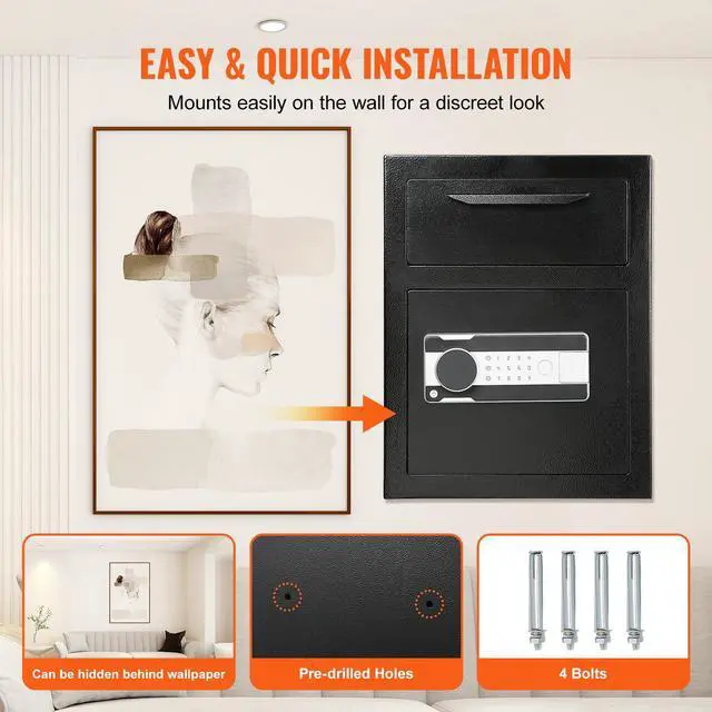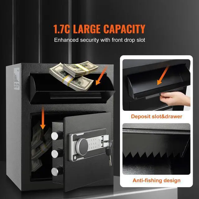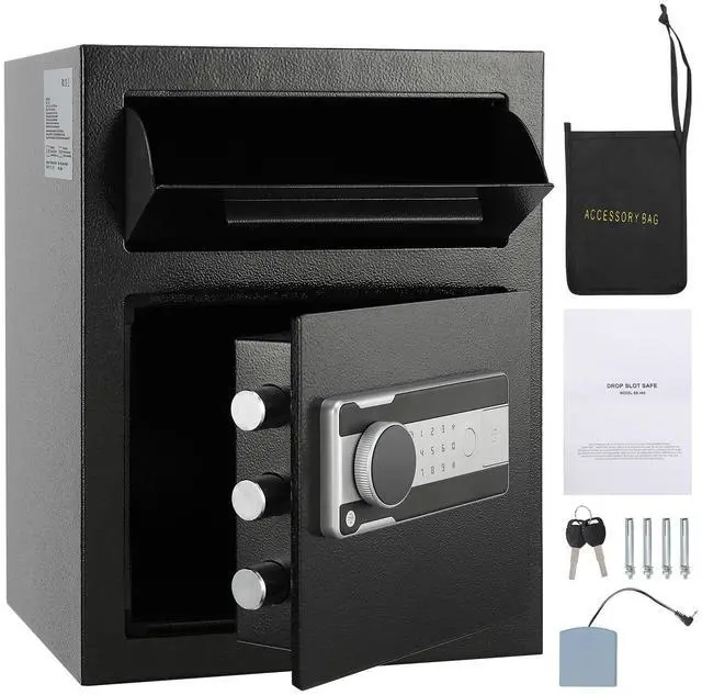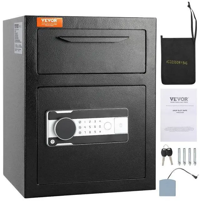 VEVOR 1.7 Cub Depository Safe, Deposit Safe with Drop Slot, Electronic Code Lock and 2 Emergency Keys, 17.71'' x 13.77'' x 13.77'' Business Drop Slot Safe for Cash, Mail in Home, Hotel, Office