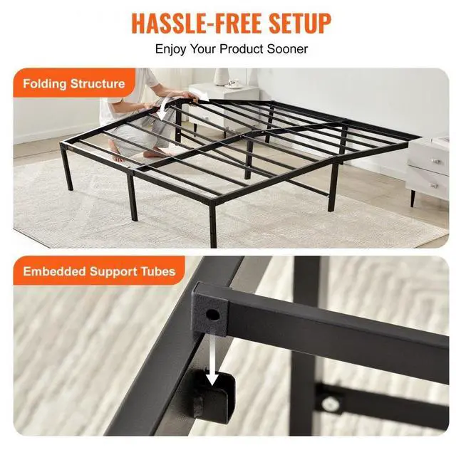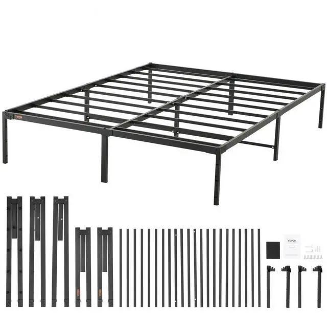 VEVOR 14 Inch Queen Metal Bed Frame Platform, No Box Spring Needed, 1500 lbs Loading Capacity Embedded Heavy Duty Mattress Foundation with Steel Slat Support, Easy Assembly, Noise Free