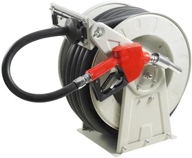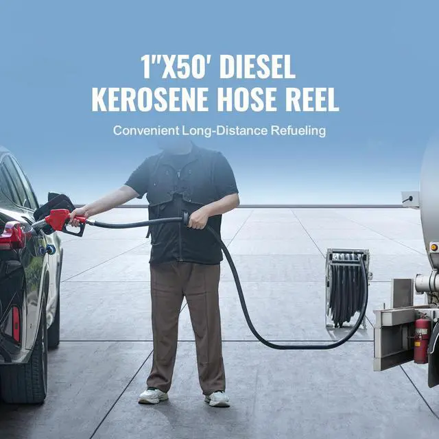 VEVOR Fuel Hose Reel, 1" x 50', Extra Long Retractable Diesel Hose Reel, Heavy-Duty Carbon Steel Construction with Automatic Fuel Nozzle, NBR Rubber Hose for Aircraft Ship Vehicle Tank Truck, 300 PSI