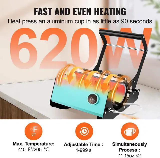 Fast and Even Heating: Our cup press features a high-power 620W heating element to ensure rapid heating, delivering beautifully printed cups in just minutes. Three-layer heating components with densely arranged heating wires ensure uniform coverage, preventing incomplete or uneven patterns.