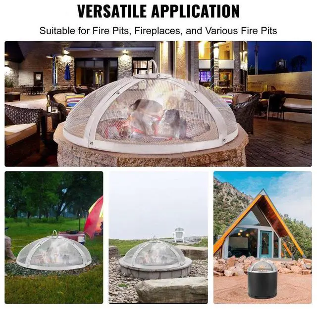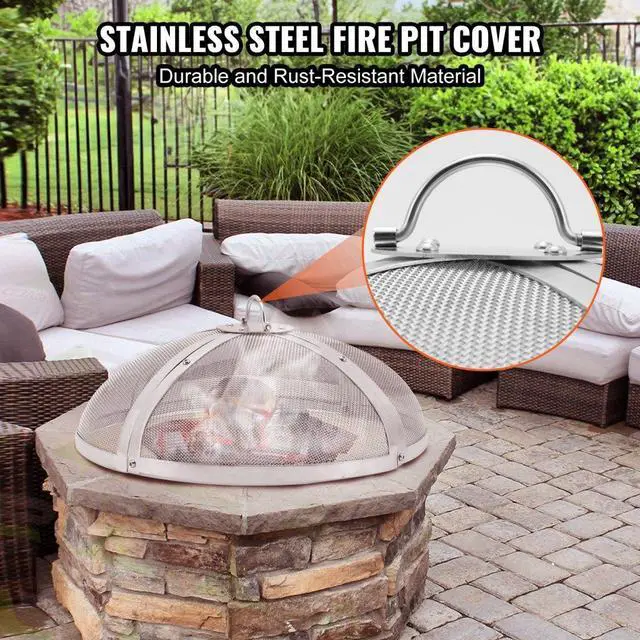 VEVOR Fire Pit Spark Screen Round 36", Reinforced Heavy Duty Steel Metal Cover, Outdoor Firepit Lid, Easy-Opening Top Screen Covers Round with Ring Handle for Outdoor Patio Fire Pits Backyard