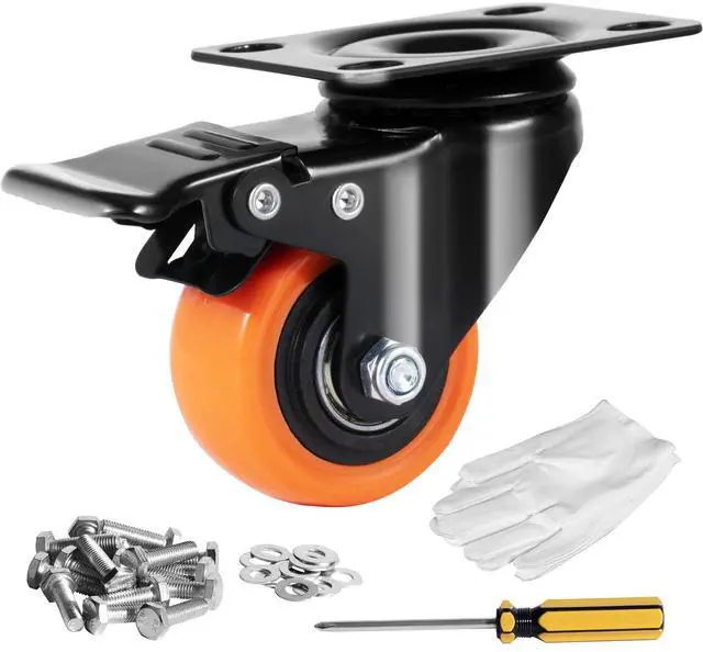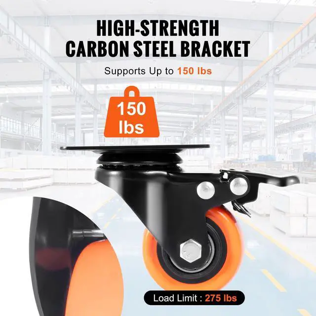 VEVOR Caster Wheels, 2-inch Swivel Plate Casters, Set of 4, with Security Dual Locking No Noise PVC Wheels, Heavy Duty 150 lbs Load Capacity Per Caster, Non-Marking Wheels for Cart Furniture Workbench