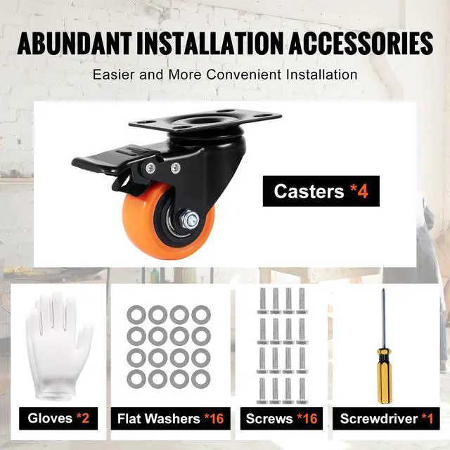 Installation Height: 2.79 in/71 mm,Item Model Number: CC-PBJL-2,Product Weight: 2.64 lbs/1.2 kg,Max Load Capacity: 150 lbs/68 kg (per wheel),Wheel Diameter: 2 in/50.8 mm,Number of Wheels: 4,Wheel Width: 0.94 in/24 mm,Wheel Material: PVC,Product Size: 4.44x2.04x2.79 in/113x52x71 mm,Wheel Axle Diameter: 0.31 in/8 mm
