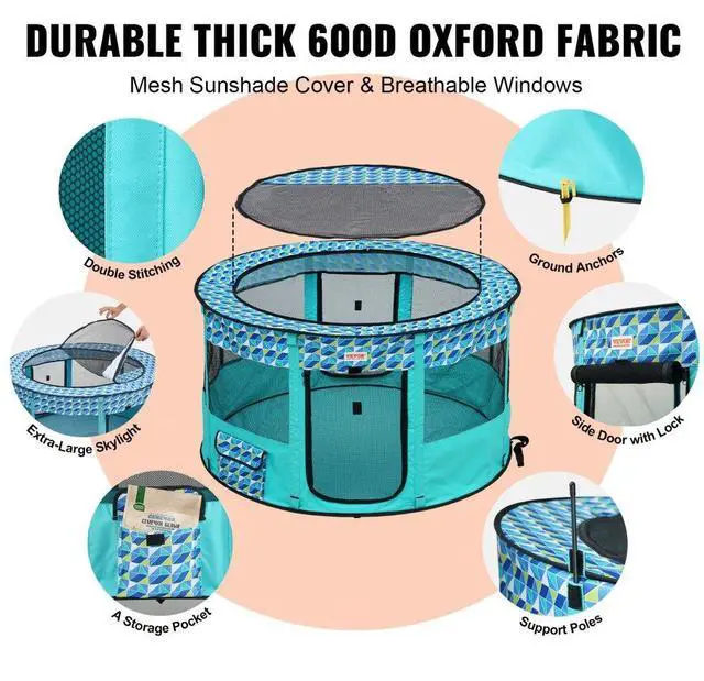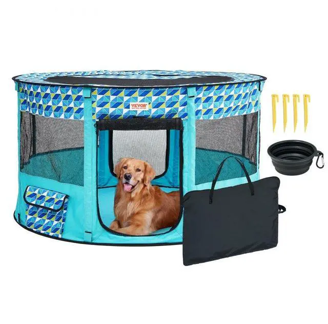 VEVOR Foldable Pet Playpen, 44'' x 44'' x 24'' Portable Dog Playpen, Crate Kennel for Puppy, Dog, Cat, Waterproof 600D Oxford Cloth, Removable Zipper, for Indoor Outdoor Travel Camping (Round, L)