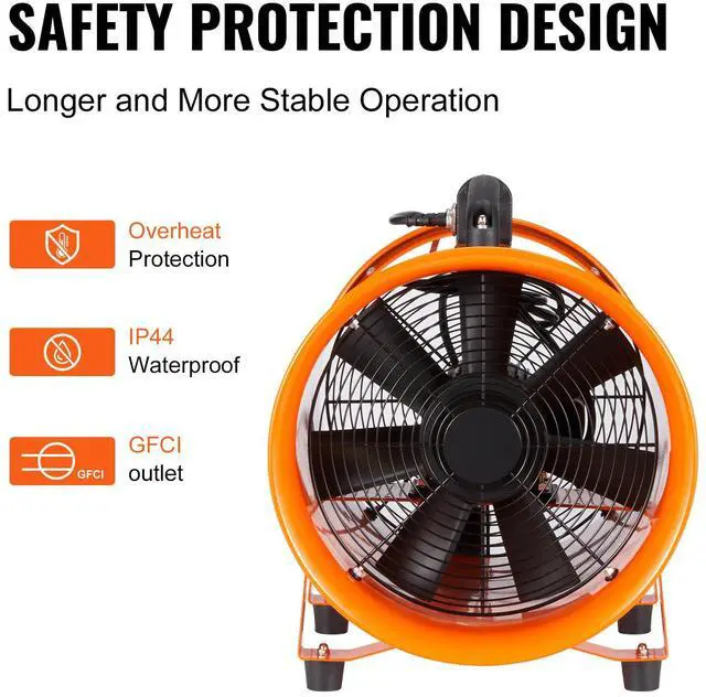 VEVOR Portable Ventilator, 8 inch Heavy Duty Cylinder Fan with 16.4ft Duct Hose, 195W Strong Shop Exhaust Blower 1070CFM, Industrial Utility Blower for Sucking Dust, Smoke, Smoke Home/Workplace