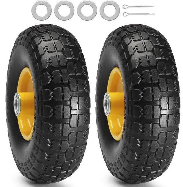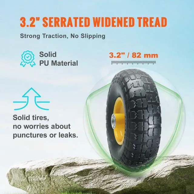 VEVOR Solid PU Run-Flat Tire Wheel, 10", 2-Pack, 400 lbs Dynamic Load, 450 lbs Static Load, Flat Free Tubeless Tires and Wheels for Hand Truck, Utility Cart, Dollies, Garden Trailers, Various Carts