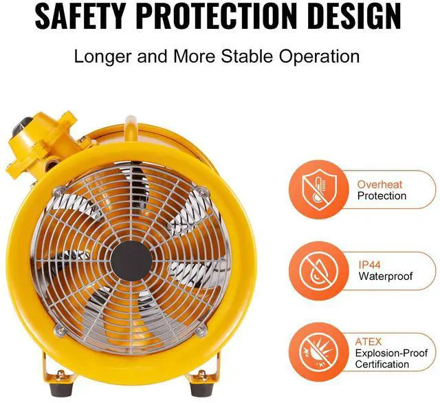 VEVOR Portable Ventilator, 10" Heavy Duty Cylinder Fan, 350W Strong Shop Exhaust Fan 1942CFM, 9.8ft Power Cord (No charging head), Industrial Utility Blower for Sucking Dust, Smoke Home/Workplace