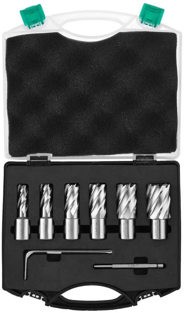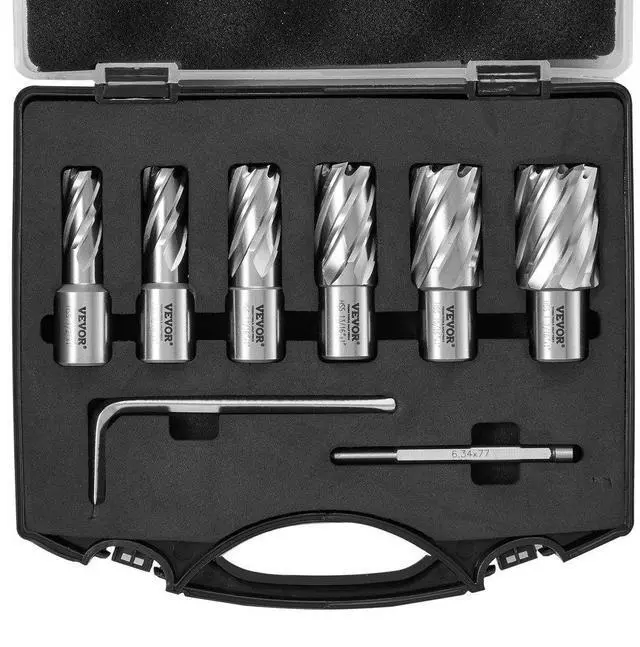 VEVOR Annular Cutter Set, 6 pcs Weldon Shank Mag Drill Bits, 1/2" to 1-1/16" Cutting Diameter, 1" Cutting Depth, M2AL High-Speed Steel, with Pilot Pin and Portable Case, for Using with Magnetic Drills