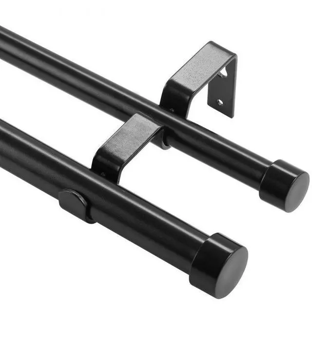 VEVOR 1 Inch Double Curtain Rods 36 to 72 Inches(3-6ft), Drapery Rods for Windows 24 to 68 Inches, Telescoping Dual Curtain Rod with Round Finials, Black