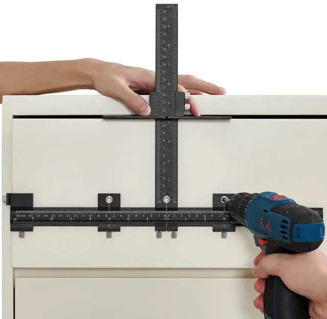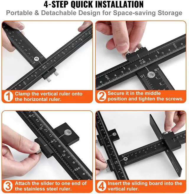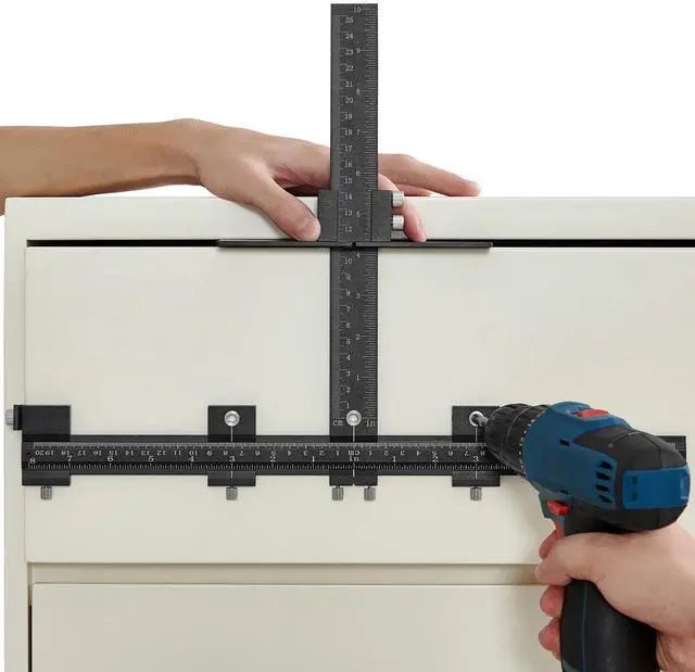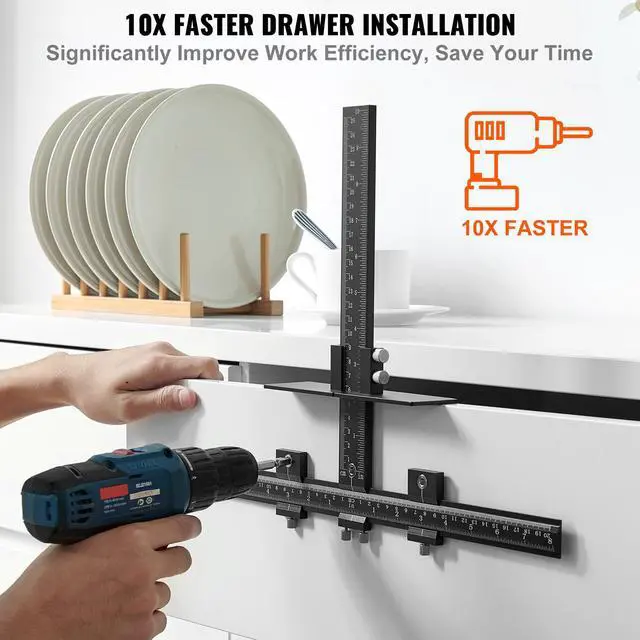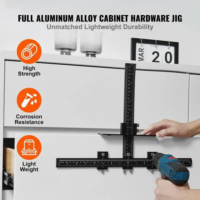 VEVOR Cabinet Hardware Jig, Aluminum Alloy Cabinet Handle Jig with Center Punch, Adjustable Cabinet Hardware Template Tool, for Installation of Door Drawer Front Knobs Handles and Pulls
