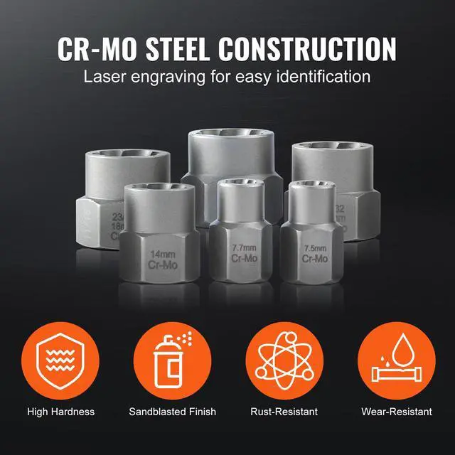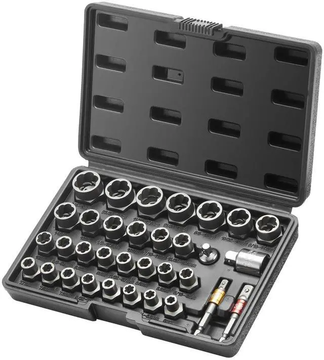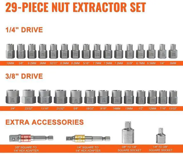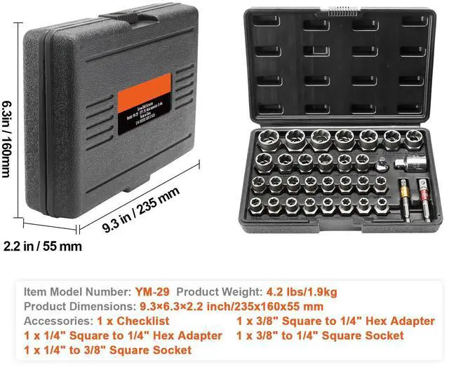VEVOR Bolt Extractor Set, 29-Piece Bolt and Nut Remover Set, 6mm to 10mm, 13/32" to 3/4", CR-MO Steel Extraction Socket Set with Storage Case, for Removing Damaged Rusted Bolts, Nuts and Screws