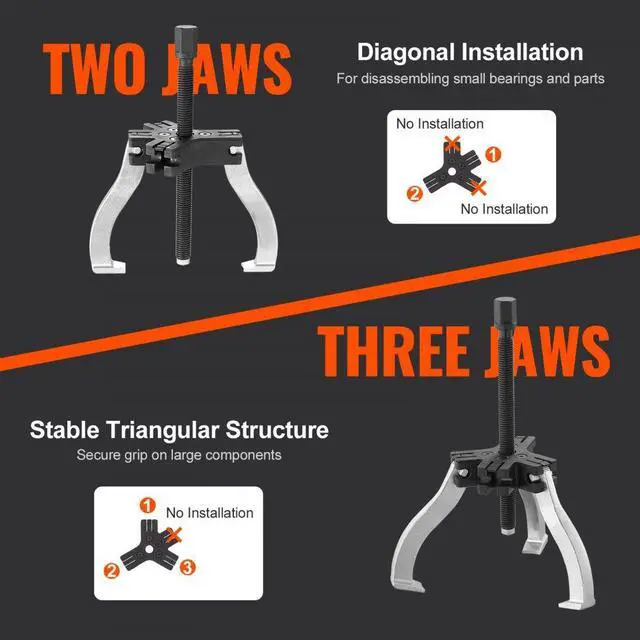 VEVOR Gear Puller Set, 3" and 7" Puller Kit, 3 Jaw Gear Bearing Flywheel Pulley Removal Tool, 2 or 3 Reversible Jaws Wheel Puller, Vertically and Horizontally, External and Internal, 2-Piece