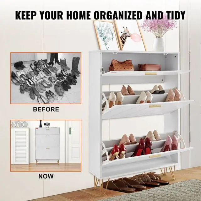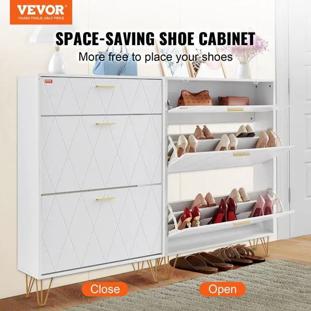 VEVOR Shoe Cabinet with 3 Flip Drawers, Shoe Storage Cabinet for Entryway, Free Standing Shoe Storage Organizer for Heels, Boots, Slippers in Hallway, Living Room