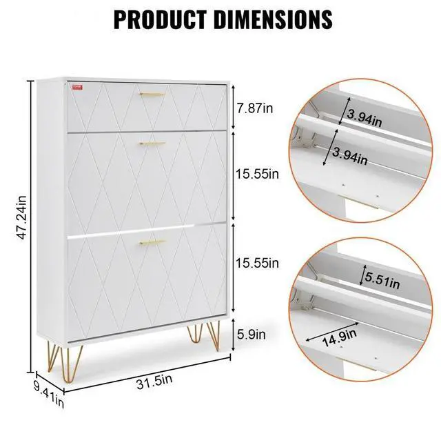 Type: 3 Flip-Open Drawers,Load Capacity: 150 lbs,Materials: P2 Chipboard+Iron,Item Model Number: HZS004,Product Weight: 53.83 lbs/24.45 kg,Drawer Height: 15.55 inch/39.5 cm,Handle Material: Aluminum Alloy,Product Size: 31.5 x 9.41 x 47.24 inch/800 x 239 x 1200 mm