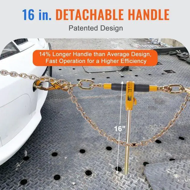 Handle Installation Length: 15 in / 39 cm,Min. Loosening Size: 23.3 in / 59.1 cm,Chain Size: 3/8 in - 1/2 in / 0.9 - 1.27 cm,Item Model Number: 3/8~1/2LT02,Pawl Structure: External Adjusting Handle,Max. Load of Ratchet Binder: 12000 lbs / 5443 kg,Max. Load of Chain: 7100 lbs / 3220 kg,Adapting Model: 3/8 in - 1/2 in / 0.9 - 1.27 cm,Main Material: 45# Cast Steel,Max. Loosening Size: 36.1 in / 80.3 cm,Certification: CE, CVSA, DOT, NACM, FMCSA