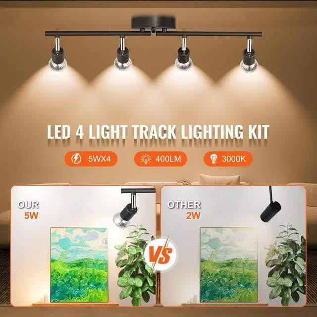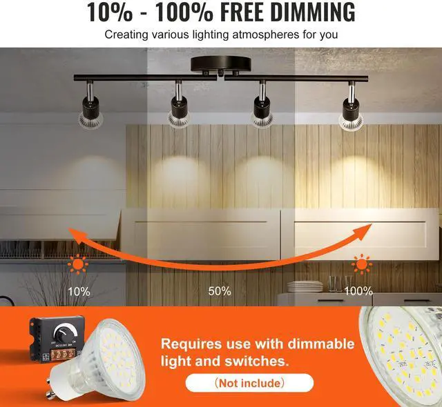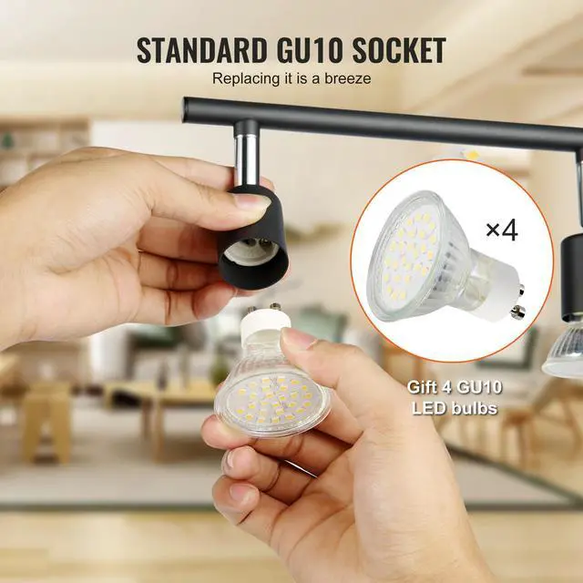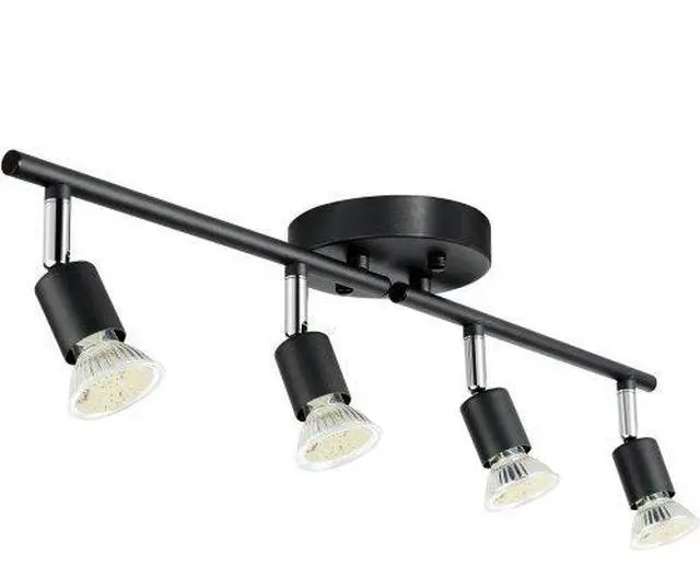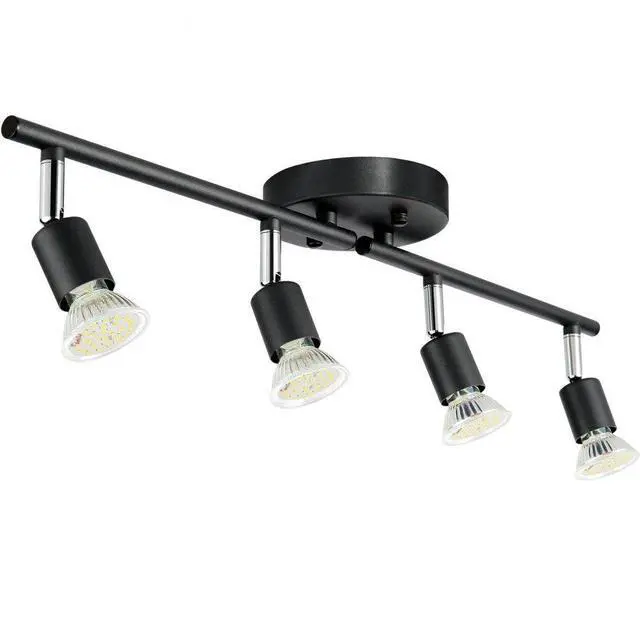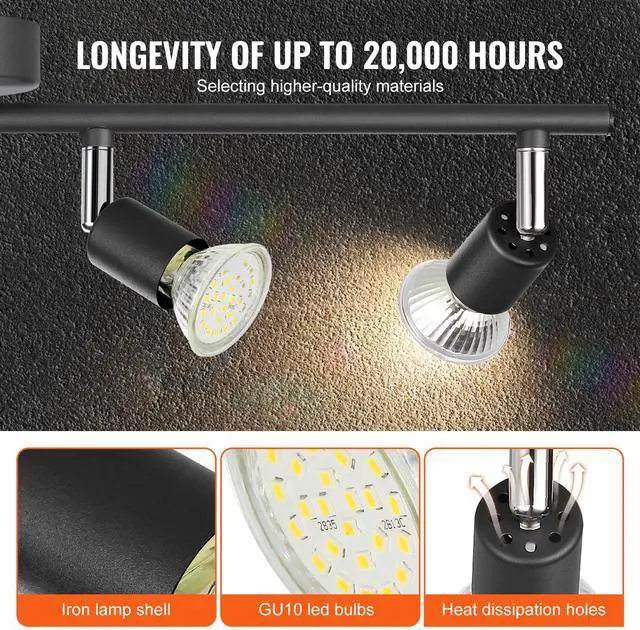 VEVOR 4-Light LED Track Lighting Kit, Ceiling Spot Light with Rotatable Light Arms and Heads, 24.8" Track Lighting Fixture, Included 4 GU10 3000K Bulbs for Indoors Exhibition, Kitchen, Living Room