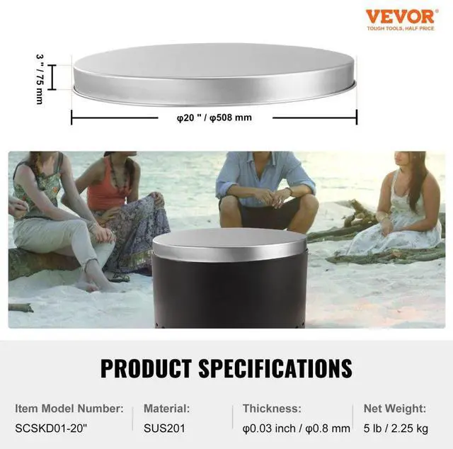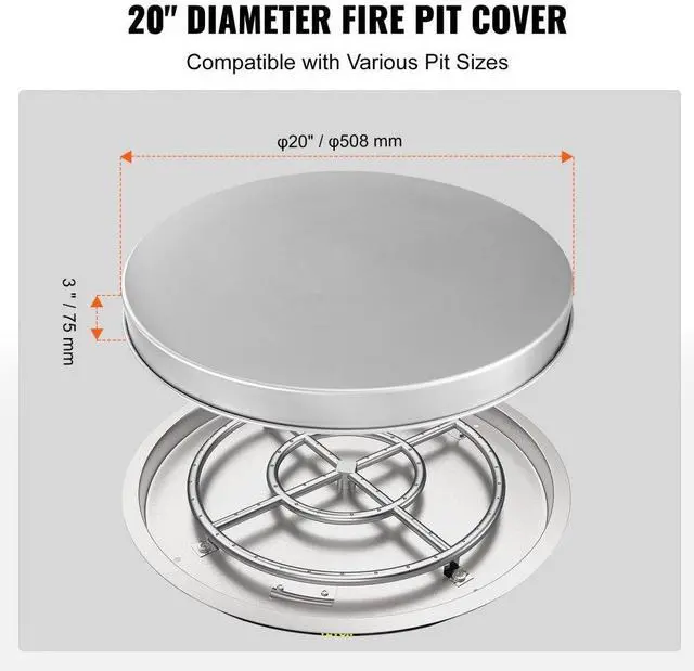 VEVOR Fire Pit Cover Lid, 20" Portable Firepit Spark Screen,Stainless Steel Steel Metal Cover, Easy-Opening Outdoor Wood Burning and Camping Stove Accessory, for Outdoor Patio Fire Pits Backyard