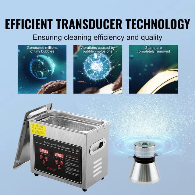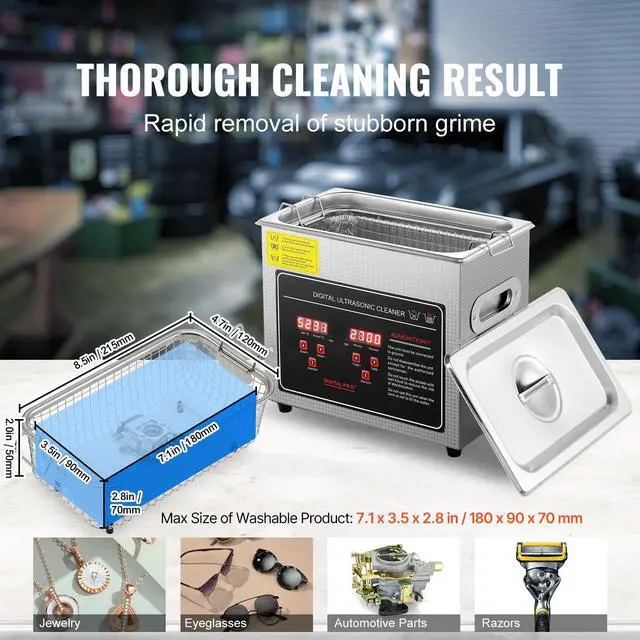 VEVOR Ultrasonic Cleaner with Digital Timer & Heater, Professional Ultra Sonic Jewelry Cleaner, Stainless Steel Heated Cleaning Machine for Glasses Watch Rings Small Parts Circuit Board (3L)