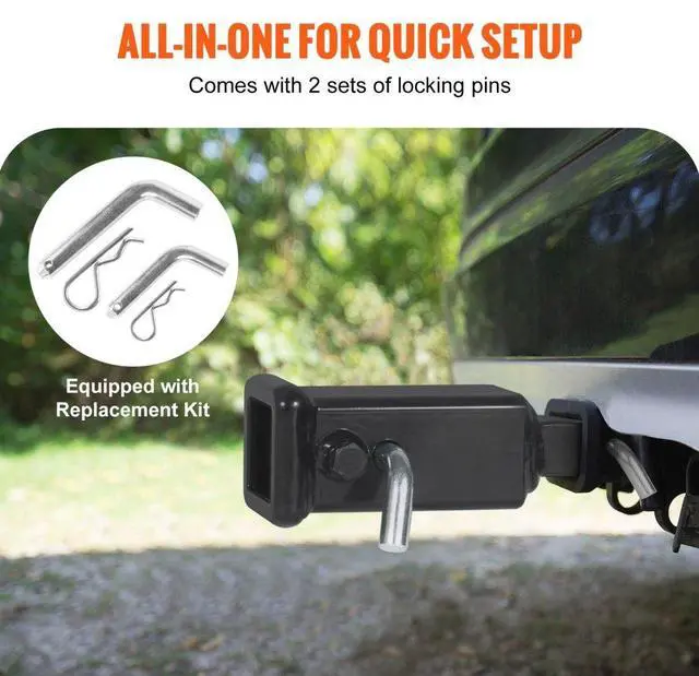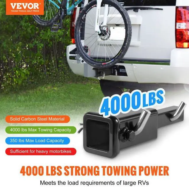 VEVOR Trailer Hitch Extender, 1-1/4" to 2" Receiver Hitch Adapter, Trailer Hitch Extension Tube Extender, 6" Extension Length, 4000 lbs Towing Capacity, Hitch Pins, Clips, Bolt and Nut Included, Black