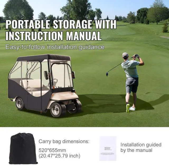 VEVOR Golf Cart Enclosure, 420D Polyester Driving Enclosure with 4-Sided Transparent Windows, 4 Passenger Club Car Covers Universal Fits for Most Brand Carts, Sunproof and Dustproof Outdoor Cart Cover