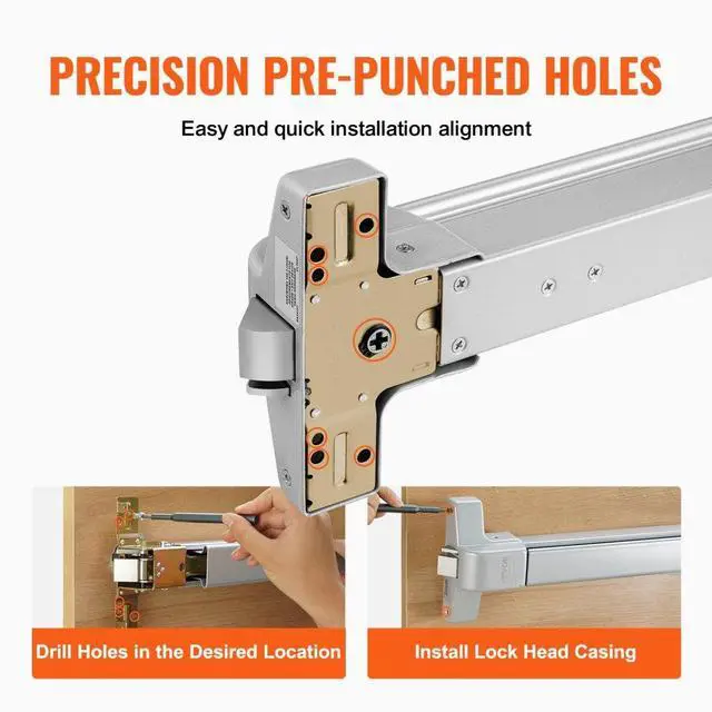 VEVOR Push Bar Door Locks, Carbon Steel Panic Bars for Exit Doors, with Exterior Lever and 3 Keys, Push Bar Panic Exit Device Door Hardware for Metal Wood Door, for Left and Right Handed Doors