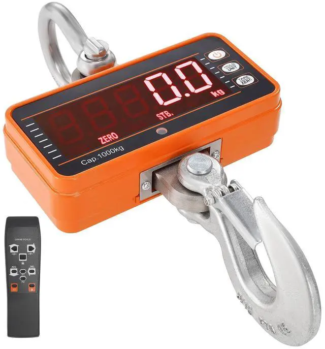 VEVOR Digital Crane Scale, 2200 lbs/1000 kg, Industrial Heavy Duty Hanging Scale with Remote Control, Cast Aluminum Case & LED Screen, High Precision for Construction, Factory, Farm, Hunting (Orange)