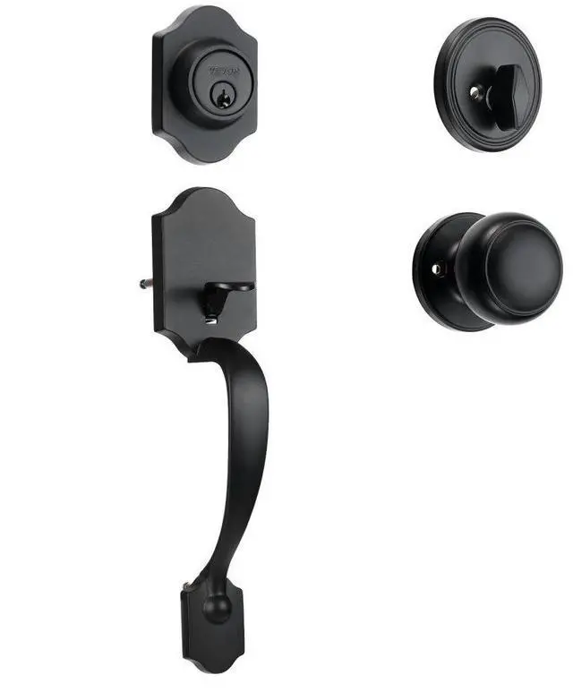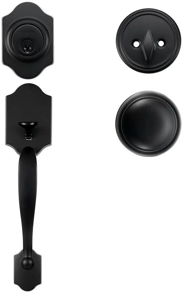 VEVOR Front Door Handle and Deadbolt Set, Matte Black Front Door Lock Set with Interior Knob, Adjustable Hole Spacing Single Cylinder Handleset, for Right and Left Handed Entrance and Front Door