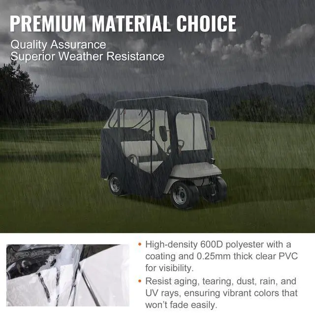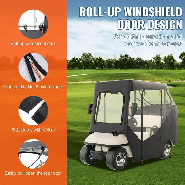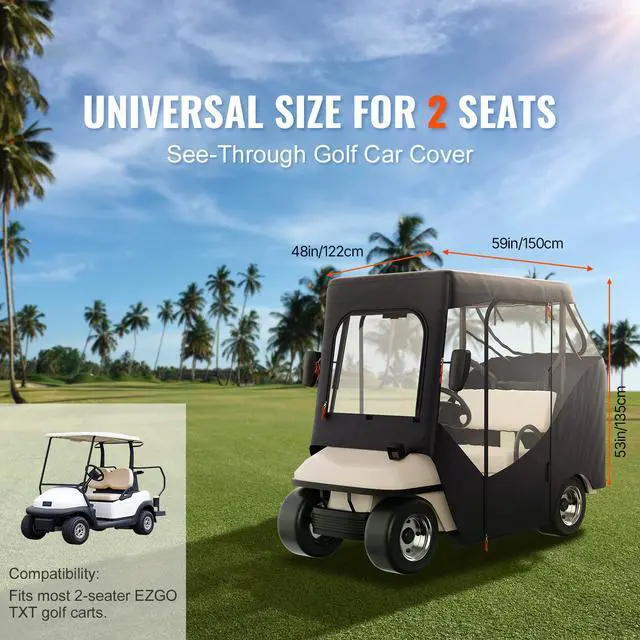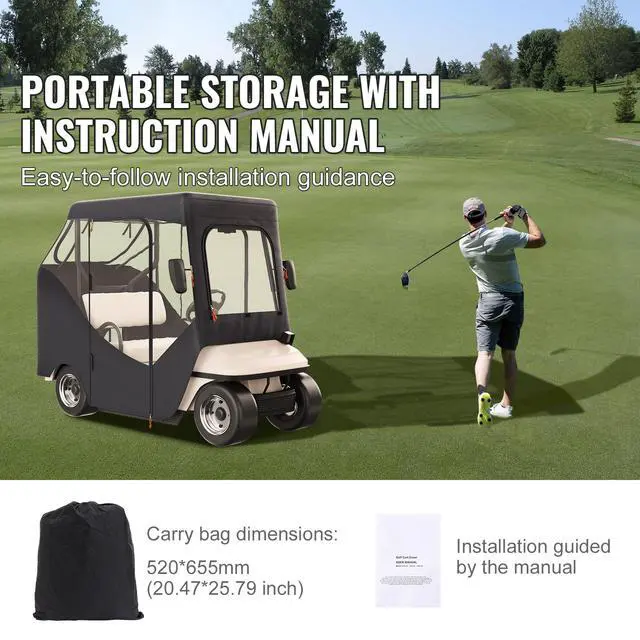 • VEVOR Golf Cart Enclosure, 600D Polyester Driving Enclosure with 4-Sided Transparent Windows, 2 Passenger Club Car Covers Universal Fits for Most Brand Carts, Sunproof and Dustproof Outdoor Cart Cover