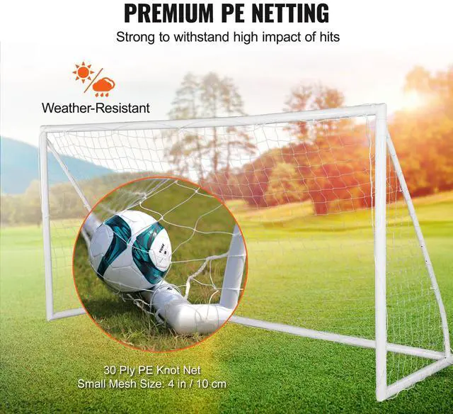 Premium PE Netting: Our soccer goal features premium PE netting with a robust 30-ply knot design. This weather-resistant netting is not only durable but also strong enough to withstand high-impact hits, ensuring that your goal will stand up to the rigors of intense gameplay.
