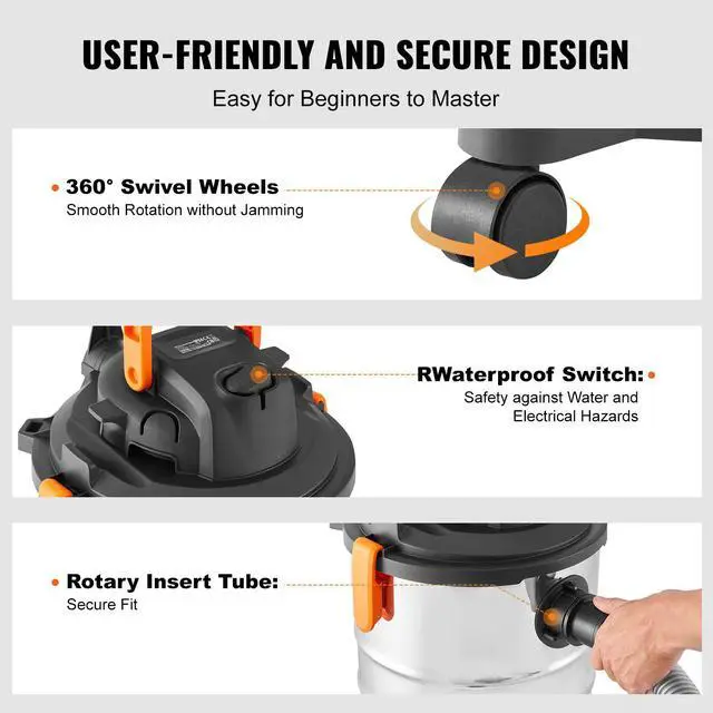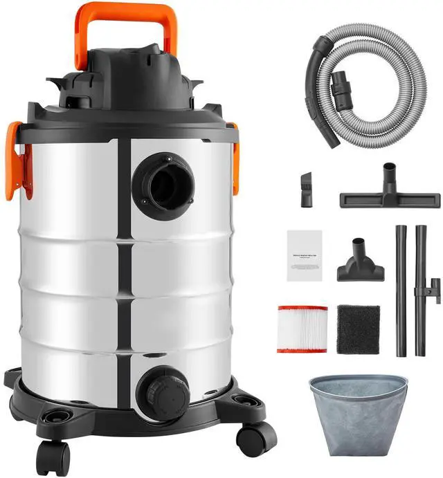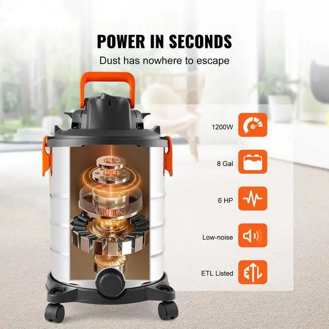 VEVOR Stainless Steel Wet Dry Shop Vacuum, 8 Gallon 6 Peak HP Wet/Dry Vac, Powerful Suction with Blower Function w/ Attachment 2-in-1 Crevice Nozzle, Small Shop Vac Perfect for Carpet Debris, Pet Hair