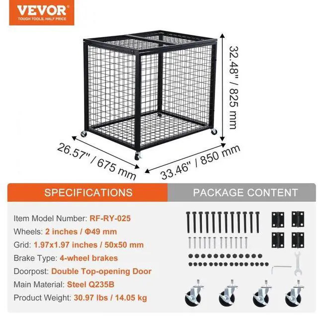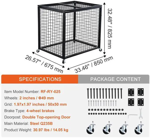 Wheel Size: 2 inches / 49 mm,Doorpost: Double Top-opening Door,Grid: 1.97x1.97 inch / 50x50 mm,Item Model Number: RF-RY-025,Product Weight: 30.97 lbs / 14.05 kg,Brake Method: 4-wheel Braking,Main Material: Q235B
