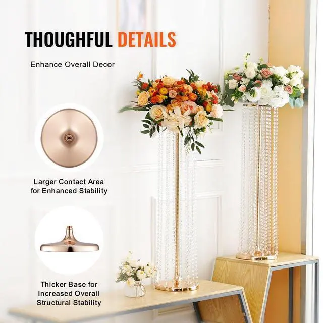 VEVOR 4PCS 35.43inch Tall Crystal Wedding Flowers Stand, Luxurious Centerpieces Flower Vases Crystal Gold Vase Metal, Perfect for T-stage Wedding Party Ceremony Dinner Event Hotel Home Decor
