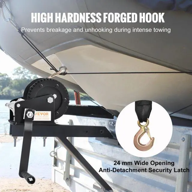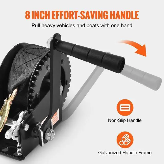 VEVOR Hand Winch, 1200 lbs Pulling Capacity, Boat Trailer Winch Heavy Duty Rope Crank with 23 ft Polyester Strap and Two-Way Ratchet, Manual Operated Hand Crank Winch for Trailer, Boat or ATV Towing