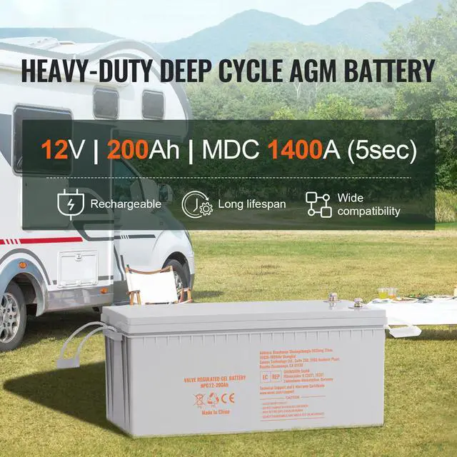 VEVOR Deep Cycle Battery, 12V 200 AH, AGM Marine Rechargeable Battery, High Self-Discharge Rate 1400A Current, for RV Solar Marine Off-Grid Applications UPS Backup Power System, Tested to UL Standards