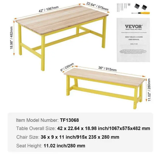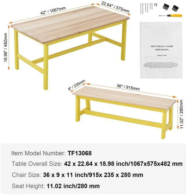 Color: Light Wood Color+Yellow (Bench Leg)