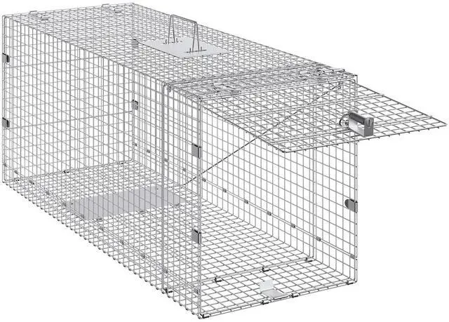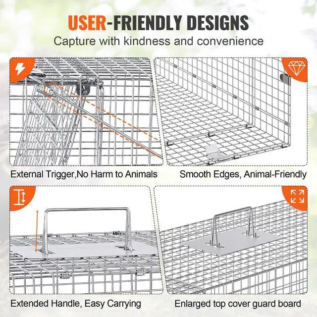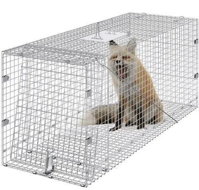 VEVOR Live Animal Cage Trap, 42" x 16" x 18" Humane Cat Trap Galvanized Iron, Folding Animal Trap with Handle for Stray Dogs, Armadillos, Raccoons, Marmots, Foxes